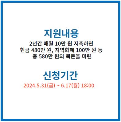 - 지원금 혜택 : 현금 240만 원 + 지역화폐 100만 원