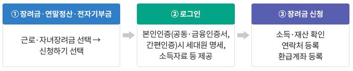 국세청 홈택스(http://www.hometax.go.kr) 로그인 → 장려금ㆍ연말정산ㆍ전자기부금 → 근로ㆍ자녀장려금 정기신청 → 신청하기