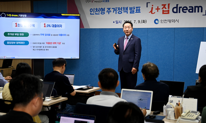 유정복 인천시장은 2024년 7월 9일 저출생 극복과 신혼부부 주거 문제 해결을 위한 '아이 플러스 집드림(i+집 dream)' 정책을 발표했습니다.