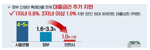 인천시는 자녀를 출산한 가구의 내 집 마련을 돕기 위한 ‘신생아 내 집 마련 대출이자 지원(1.0 대출)’도 추진하는데요,